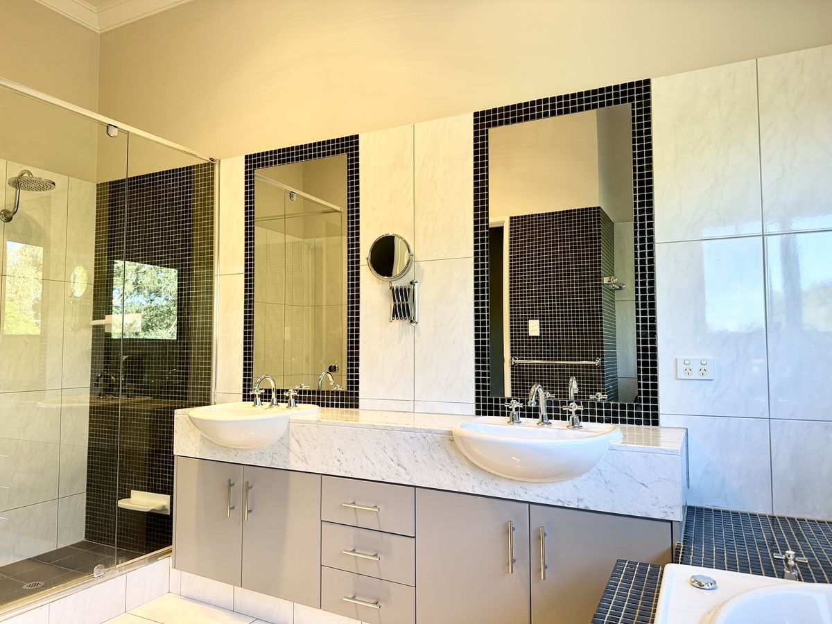 Upstairs, the master suite offers a peaceful escape with a spacious bedroom, walk-in wardrobe, and a luxurious ensuite featuring dual vanities and a soaking tub. Two additional oversized bedrooms, a central bathroom, and a cosy lounge complete the upper level.