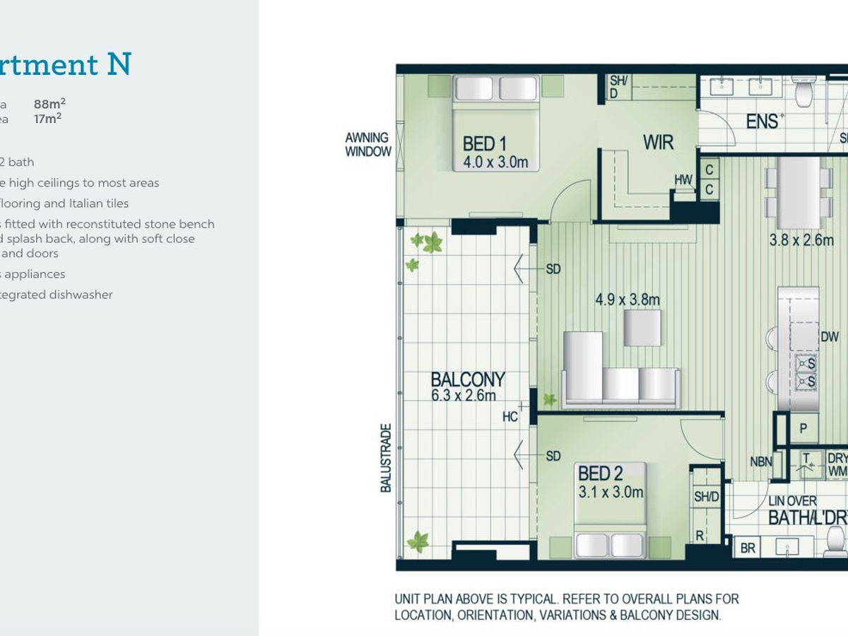 - Internal area 88m²