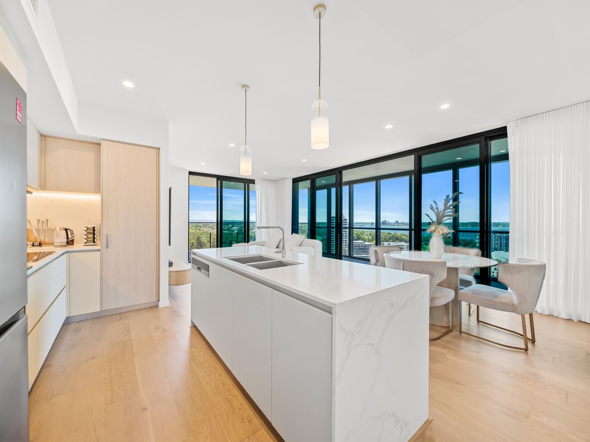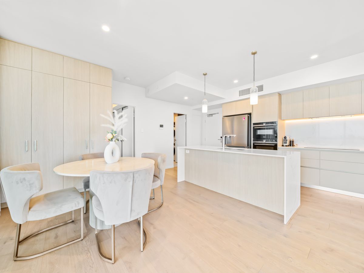 Step into a thoughtfully designed open-plan kitchen, dining and living area, filled with natural light and flowing seamlessly onto an expansive private balcony — perfect for alfresco entertaining while enjoying river and city outlooks.